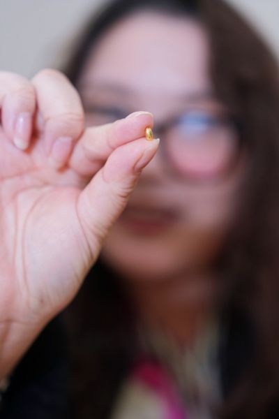 “找到了!”人群里不时传来欢呼。于是门外排队的观众更加跃跃欲试。每位参与者进场前都拿到主办方发的一个小瓶子,当15分钟体验结束后,有的小瓶子里装进了一两粒明晃晃的金米,目前最高纪录一人淘得5颗金米。有的小瓶子则空空如也。
