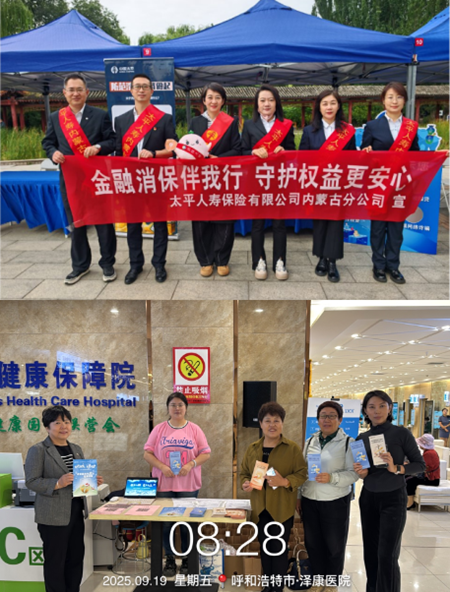为深入贯彻落实国家关于金融消费者权益保护与金融知识普及教育工作,进一步提升市民金融风险防范意识和金融素养,9月19日,太平人寿保险有限公司内蒙古分公司(以下称“太平人寿内蒙古分公司”)走进呼和浩特市“满都海公园”“泽康体检中心”开展了主题鲜明、形式多样的宣传活动。本次活动聚焦老年人、新市民、青少年及公司客户等重点人群,通过游戏互动、有奖问答等通俗易懂的方式,将实用的金融知识送到群众身边。