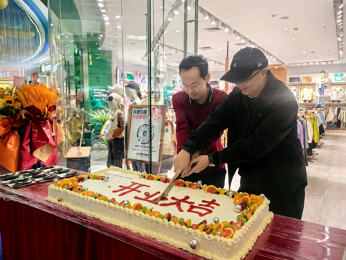 紧接着,主持人邀请现场嘉宾共同上台,为青蛙王子旗舰店送上最美好的祝福。随着蛋糕刀缓缓切入,“开业大吉,生意兴隆”的祝福声此起彼伏。