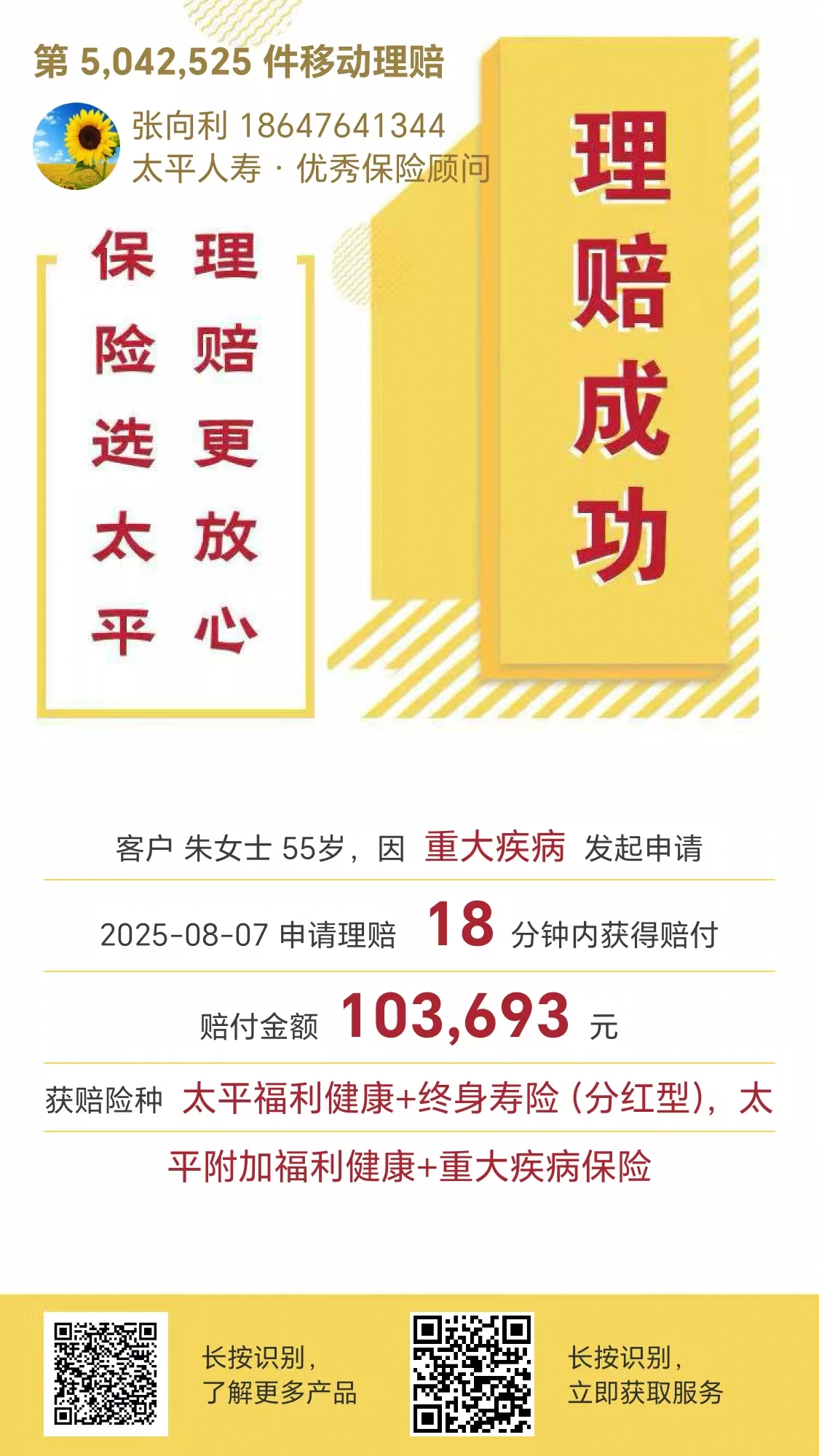在传统观念中,保险理赔常与繁琐流程、漫长等待划上等号。然而,太平人寿正以科技创新打破这一刻板印象,重新定义理赔服务的高效与温度。近日,太平人寿保险有限公司赤峰中心支公司(以下称“太平人寿赤峰中心支公司”)通过科技赋能的“移动快赔”服务,仅用18分钟就完成了一笔重大疾病理赔,为客户朱女士送去了及时的支持与保障。