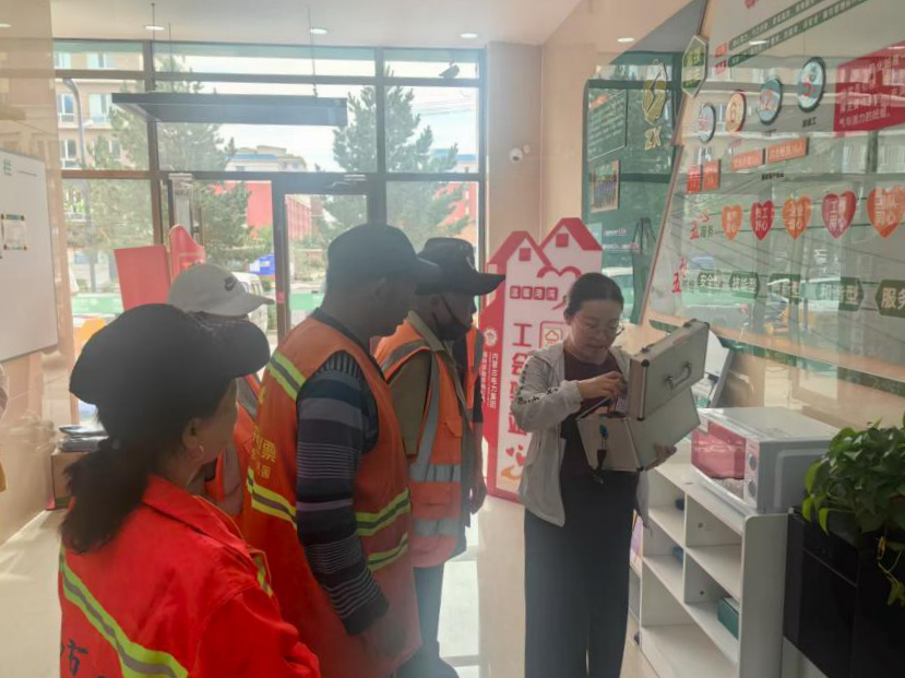 另一旁,工会工作人员手持便民药箱,主动向休息的劳动者们逐一介绍药箱内常备的创可贴、碘伏、纱布、红花油、速效救心丸、常用感冒药各类应急药品和医疗用品,旨在为户外劳动者应对突发性轻微伤病提供及时、便捷的初步处理保障。此外,工作人员还重点介绍了驿站常年提供的免费热水、充电插座、加热餐食、临时休息等基础服务,以及应对恶劣天气提供的雨衣、雨鞋等应急物资的领取途径,生动展示了驿站“冷可取暖、热可纳凉、渴可喝水、急可如厕、累可歇脚、伤可用药”的全方位服务功能,让每一位户外劳动者都能更全面、深入地了解并享受这个“暖心港湾”带来的便利。