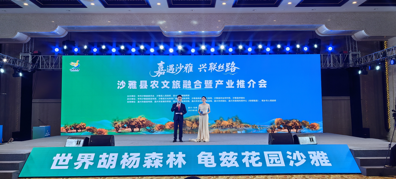 万里同秋,山河远阔。9月20日,让嘉沙两地各族人民倍感期待的沙雅县农文旅融合暨产业推介会在嘉兴市乌镇举行。此次活动以“嘉”遇沙雅,“兴”联丝路为主题,面向长三角地区客商、旅行商及新闻媒体,全面推介沙雅县独特的文化旅游资源、优势农业产业和巨大投资潜力,旨在进一步扩大开放合作,推动县域经济高质量发展。