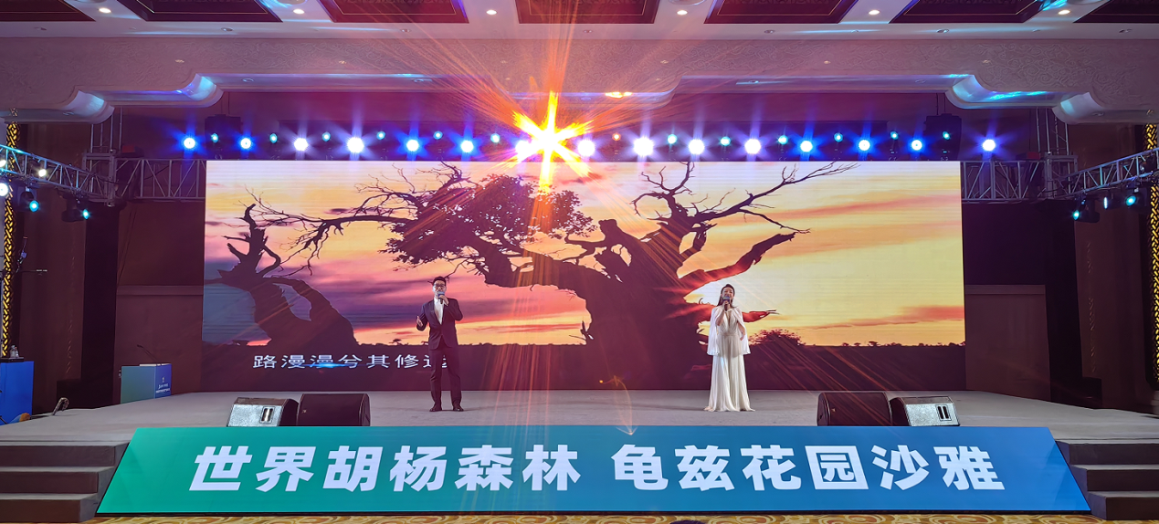 发布会现场座无虚席,播放的沙雅文旅形象宣传片与招商宣传片,生动展现了沙雅独特的人文自然风光和历史文化底蕴。推介会在援疆主题歌曲《大爱有疆》、新疆舞蹈《石榴花开》中拉开帷幕。紧接着,大屏幕上的2025年沙雅胡杨季系列活动宣传片将现场氛围拉满,让在场嘉宾品味沙雅的文旅盛宴。