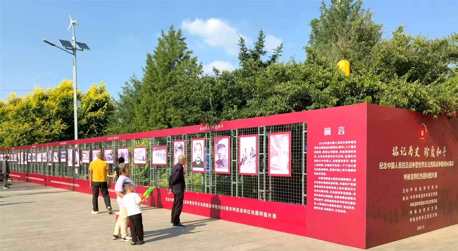“铭记历史 珍爱和平”纪念中国人民抗日战争暨世界反法西斯战争胜利80周年呼和浩特红色题材图片展,精心遴选116幅珍贵历史图片和22幅反映新时代呼和浩特在政治、经济、文化、社会、生态文明建设等方面取得的辉煌成就摄影作品,真实记录了抗战时期,中国共产党团结带领呼和浩特各族人民进行伟大斗争的光辉历程。