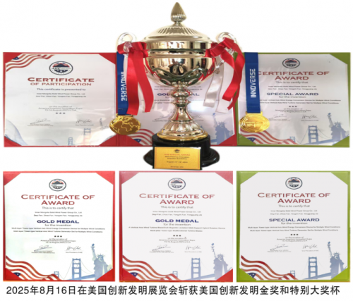 此后,索力德 “二代风电” 技术的获奖之路持续升温。2025年6月11日——13日,在第八届中国(上海)国际发明创新展览会上,其明星产品《多层塔式垂直轴多风况风能转换装置》《多柱塔式多功能涡轮叶片》垂直轴兆瓦级(MW)大风机精髓技术再获金奖;2025年8月15日——16日,在美国创新发明展览会上,索力德 “二代风电” 的四项重大发明再度斩获金奖,其中一项还荣获特别奖大奖杯。一次次国际奖项的认可,不仅证明了索力德 “二代风电” 技术已获得世界公认,更让全球目光聚焦中国风电创新,彰显了中国在清洁能源领域的技术实力与大国担当。