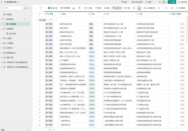 护理质量控制是医院生命线。过去,护理部每月需核算全院100多项质控指标,管理人员深陷于“报表丛林”,人工嵌套公式核算不仅耗时4~5天,且存在差错风险。